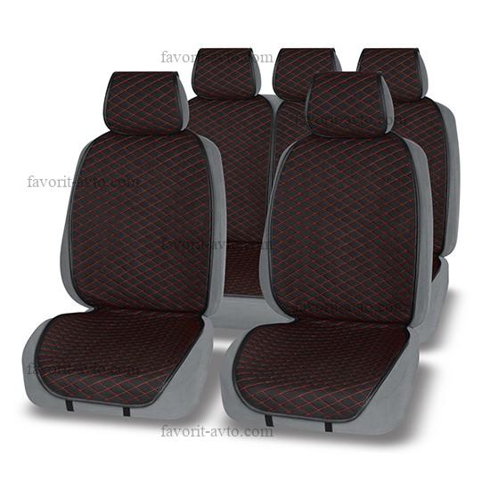 Накидка FOCUS AUTOPREMIER, комплект на весь салон 4 шт., чёрный/красная нить, тёплый шёлк, декоративный ромб, 10 мм поролон, 1/5, FOC1020 |