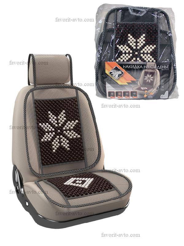 Накидка на сиденье "Nova Bright-fusion" деревянная массажная с сеткой и подголовником, с рисунком, бежевая. 1/12 |