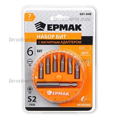 ЕРМАК Биты для шуруповерта, набор 7шт.,магнитный адаптер для бит, биты 25 мм, пластиковый кейс. 1/10шт |