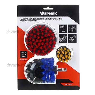 ЕРМАК Набор насадок щеток, универсальный, для дрели-шуруповерта 3 насадки, блистер |
