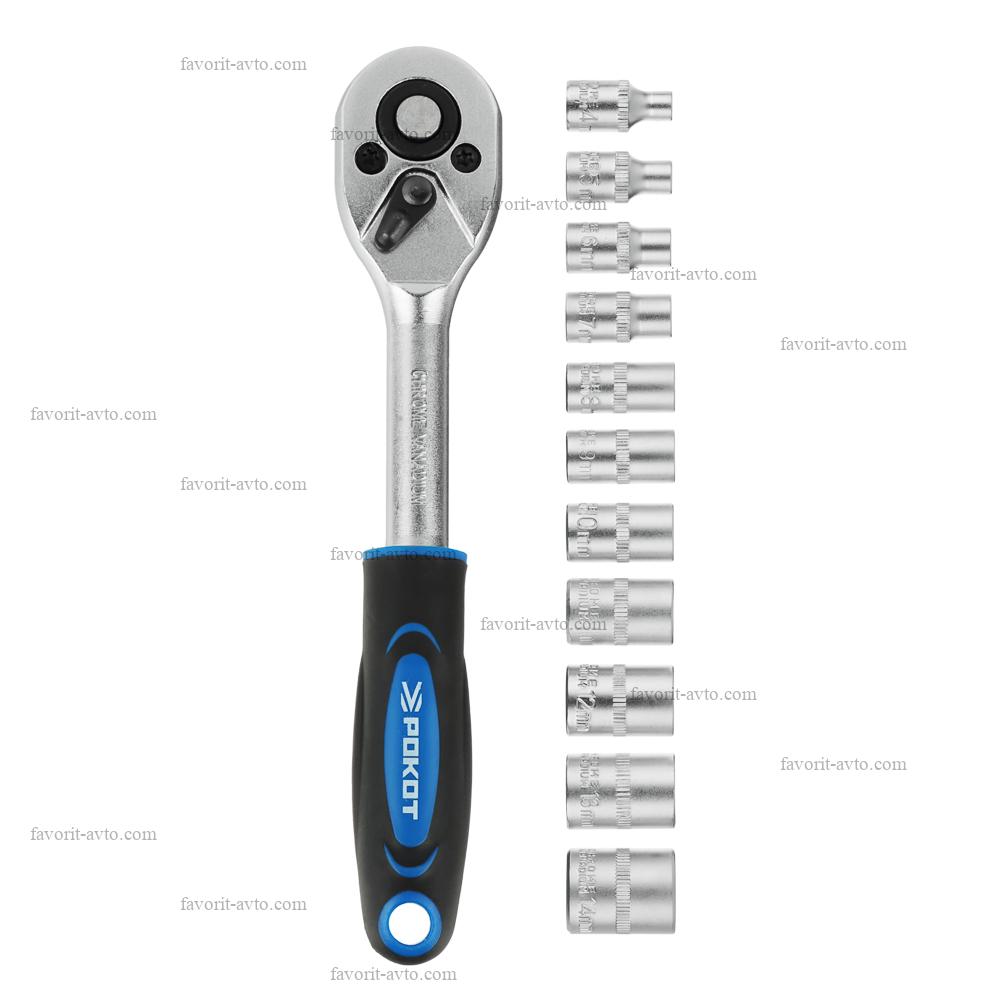 РОКОТ Набор профессионального инструмента, 12 предметов, 1/4" (головки и трещотка).1/15шт |