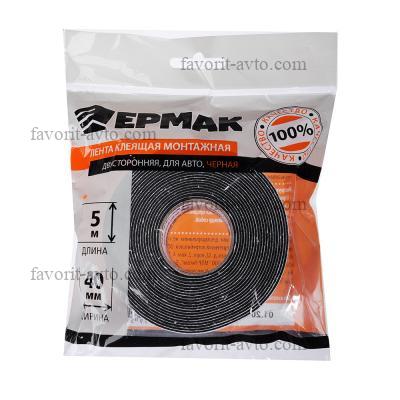 ЕРМАК Лента клеящая монтажная 2-х сторонняя, для АВТО, 40мм x 5м черная. 1/200 |