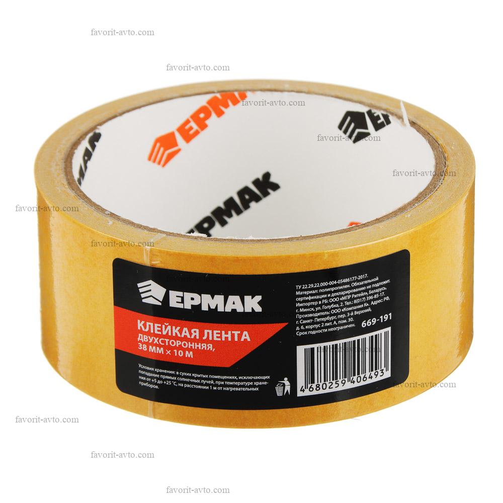ЕРМАК Клейкая лента двухсторонняя 38мм х 10м, (полипропилен, инд.упаковка) |