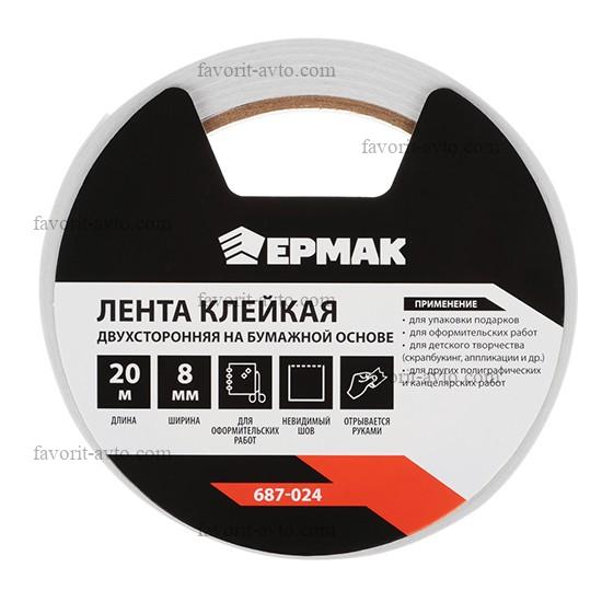 ЕРМАК Клейкая лента двухсторонняя на бумажной основе 8мм х 20м |
