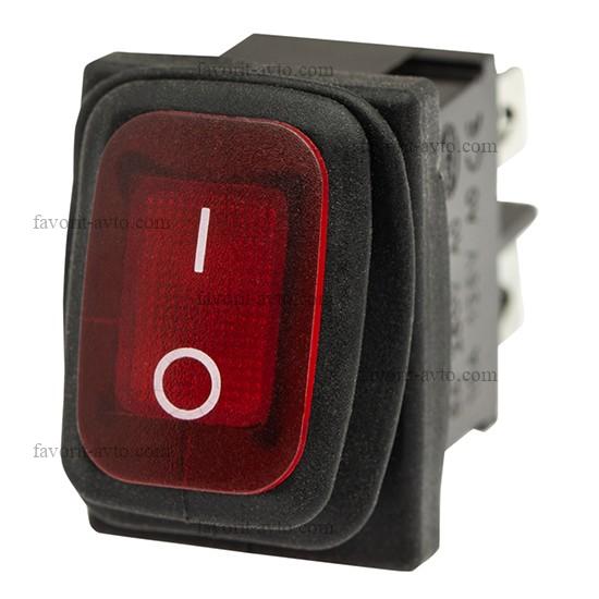 Клавишный переключатель с защитой двухпозиционный ON-OFF с фиксацией с подсветкой, 3 контакта. 1/100. Арт.: G9038 |