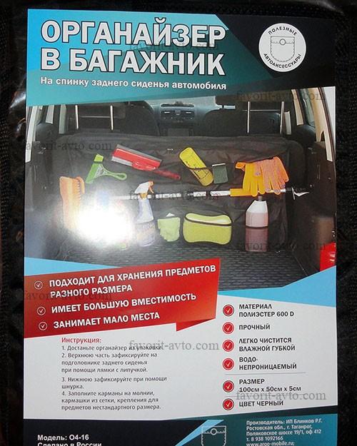 Органайзер большой на заднее сиденье/в багажник ( ткань 600 D) " ARGO " О4-16. |