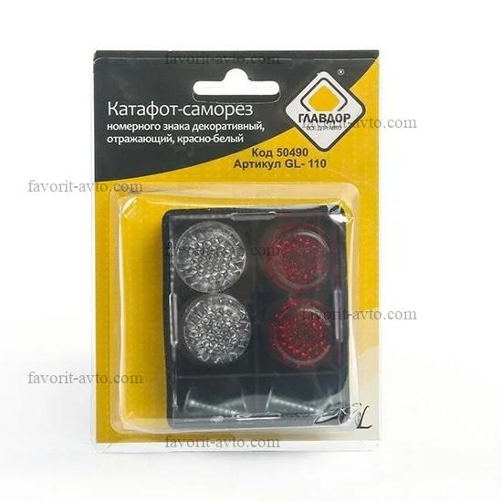 Саморез-катафот номерного знака КРАСНЫЙ+БЕЛЫЙ "ГЛАВДОР" GL-110 (4 шт.). Арт. 50490. 1/30 |