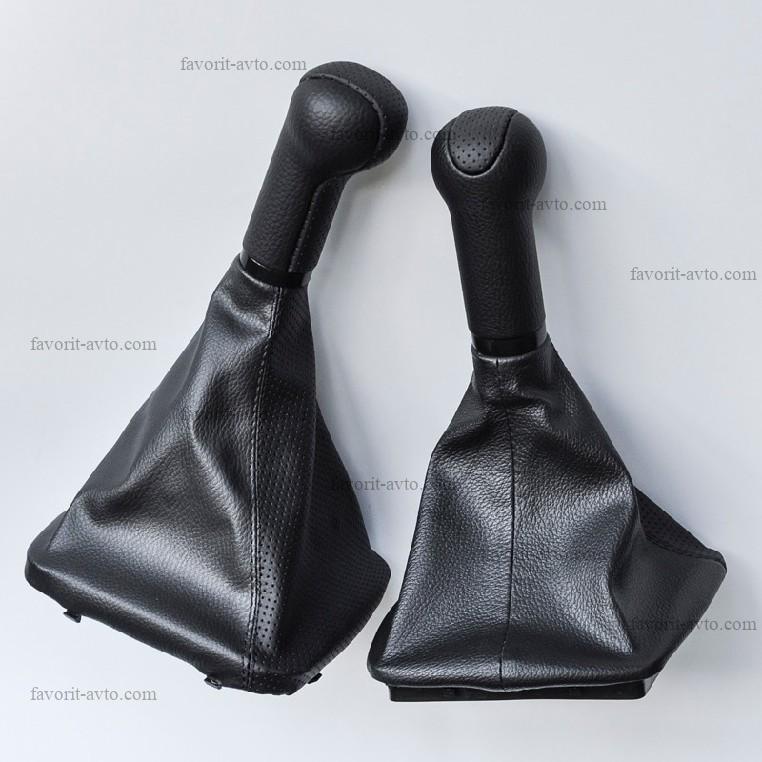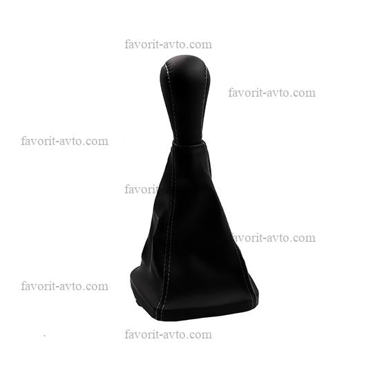 Ручка КПП с чехлом кож-зам ВАЗ 2115 /ЧЁРНЫЙ+белая нить/. "Фаворит-авто" |