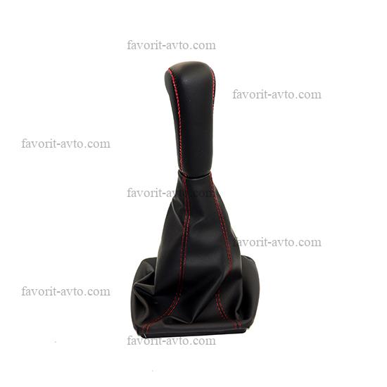 Ручка КПП с чехлом кож-зам ВАЗ 2110 /ЧЁРНЫЙ+красная нить/. "Фаворит-авто" |