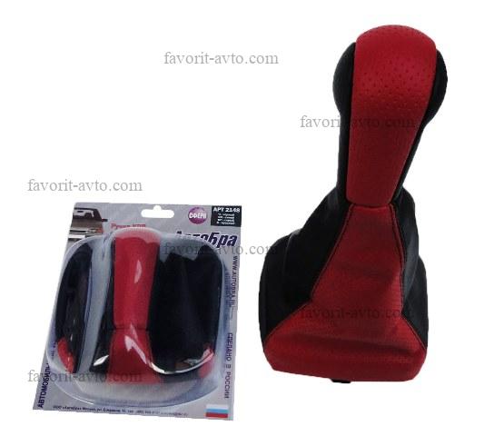 Ручка КПП с чехлом кож-зам ПРИОРА /ЧЁРНЫЙ+красная нить/. "Фаворит-авто" |