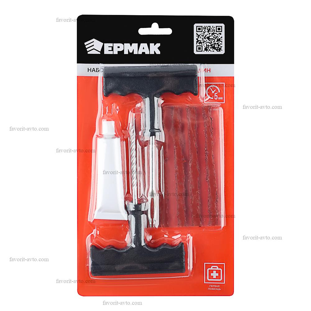 ЕРМАК Набор для ремонта бескамерных шин №2: клей, 5 жгутов, T-инструмент. 1/36/144 |