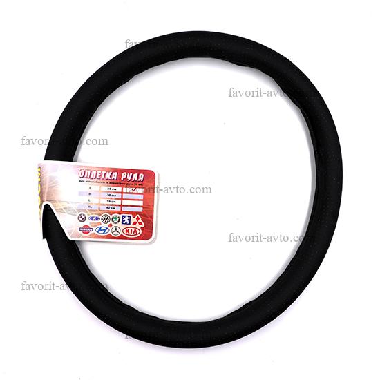 Оплетка руля, кож-зам /ЧЁРНАЯ перфорация ПОД ПАЛЬЦЫ/, размер М - 37-38 см. "Фаворит-авто". 1/20 |