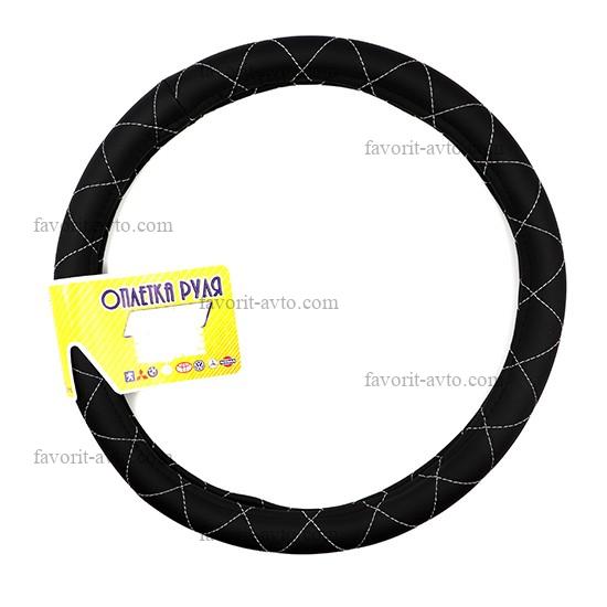 Оплетка руля, размер 50 см, кож-зам /ЧЁРНЫЙ+ БЕЛЫЙ ромб/. "Фаворит-авто". 1/25 |