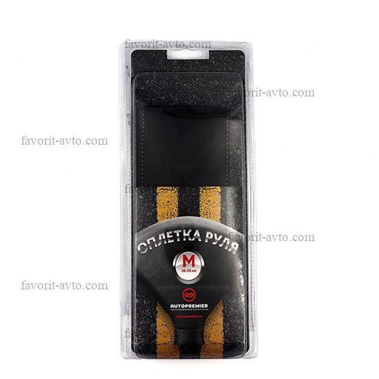 Оплётка для перетяжки руля AUTOPREMIER, бескаркасная, кожаная, гладкая, /ЧЁРНЫЙ/, размер (М), 1/50, HZT1000M |