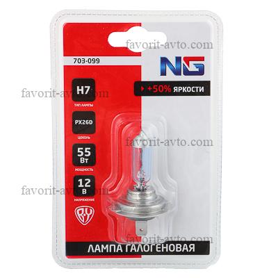 NG Лампа галогеновая H7, 12В 55Вт, Супер белый, PX26D, 1шт/блистер. 1/10 |