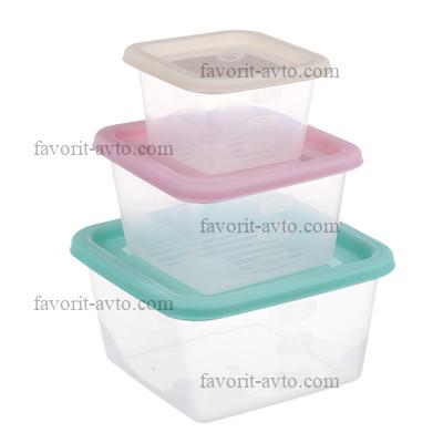 Набор контейнеров квадратных, 3шт, 0,63л+0,33л+0,15л, пластик |