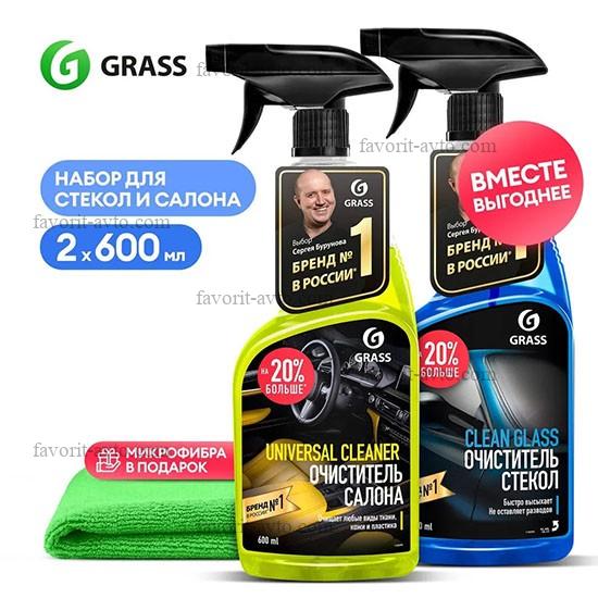 GraSS 282 Набор подарочный в салон авто Universal Cleaner и Clean Glass (Очиститель салона, очиститель стекл, микрофибра). уп-ка прозрачный пакет. |