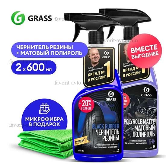 GraSS 283 Набор подарочный универсальный Black Rubber и POLYROLE MATTE (Чернитель резины, глянцевая полироль, микрофибра). уп-ка прозрачный пакет. |
