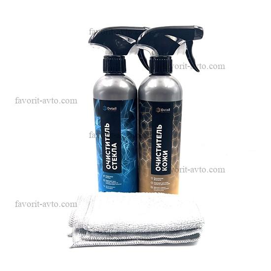 DETAIL 293 Набор подарочный для салона и стёкл ( Очиститель кожи, очиститель стекл, салфетка). уп-ка прозрачный пакет. |