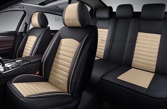 Авточехлы 5D SIRIUS AUTOPREMIER, комплект 4 шт., бежевый, экокожа, закрытая спинка, карман, литой подголовник, 1/6, SIR1600 |