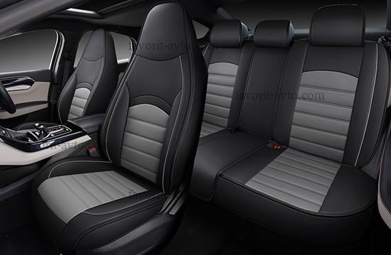 Авточехлы 5D SIRIUS AUTOPREMIER, комплект 4 шт., чёрный/серый, экокожа, закрытая спинка, карман, литой подголовник, 1/6, SIR1400 |