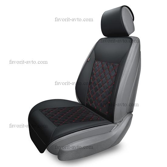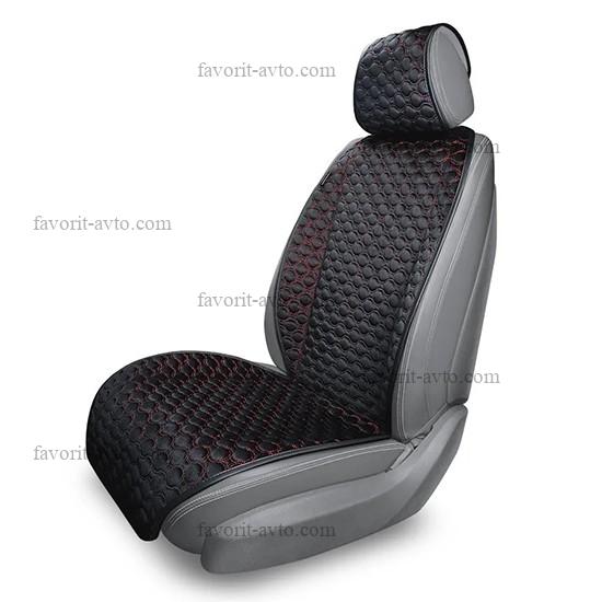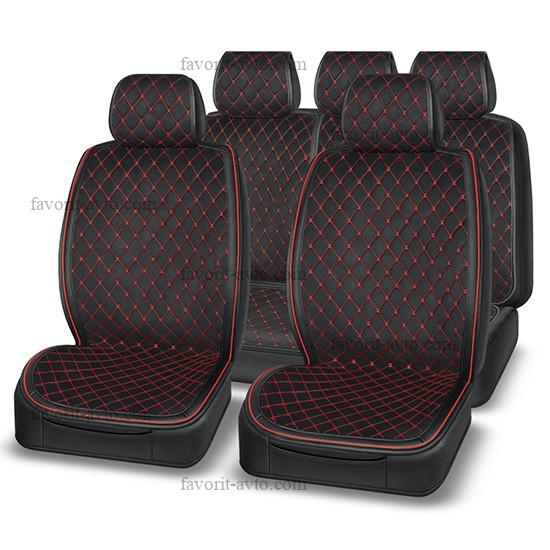 Накидка FOCUS AUTOPREMIER, комплект на весь салон 4 шт., чёрный/красная нить, тёплый шёлк, декоративный ромб, 10 мм поролон, 1/5, FOC1020 |