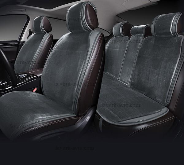 Накидка меховая "CROWN" AUTOPREMIER, комплект на весь салон 5 шт., серый, искусственный мех, боковая отделка экокожей, 1/2, SV1400 |