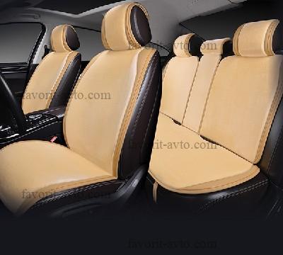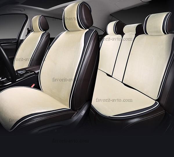 Накидка меховая "CROWN" AUTOPREMIER, комплект на весь салон 5 шт., бежевый, искусственный мех, боковая отделка экокожей, 1/2, SV1600 |