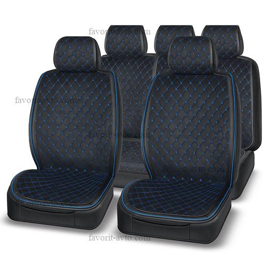 Накидка BOSS AUTOPREMIER, к-т на весь салон 4 шт., чёрный/синий, алькантара, боковая отделка экокожей, закрытая спинка, карман, 1/3, BOS1010 |