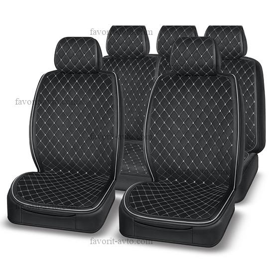 Накидка FOCUS AUTOPREMIER, комплект на весь салон 4 шт., чёрный, тёплый шёлк, декоративный ромб, 10 мм поролон, 1/5, FOC1000 |