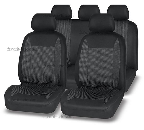 Авточехлы 5D SUNRISE AUTOPREMIER, комплект 4 шт., чёрный/серый, оксфорд, закрытая спинка, карман, 1/6, SUN1400 |