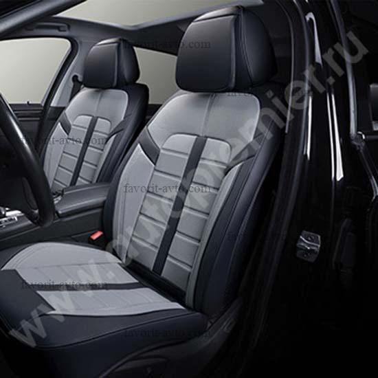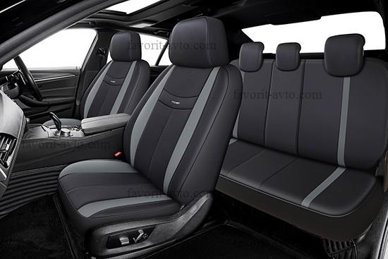 Авточехлы AMULET AUTOPREMIER, чёрный/серый, экокожа, карман, 5 мм поролон, 2 молнии, 11 предметов, 1/8, AMT1040 |