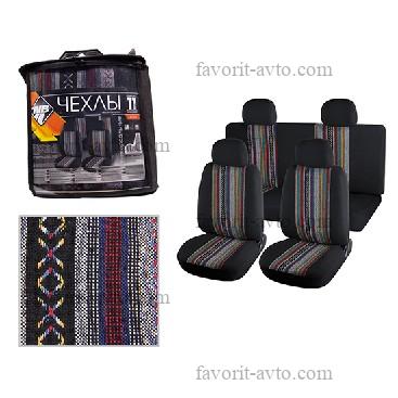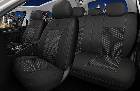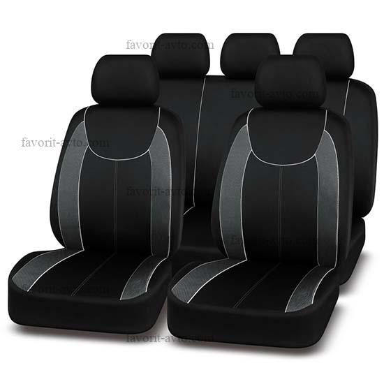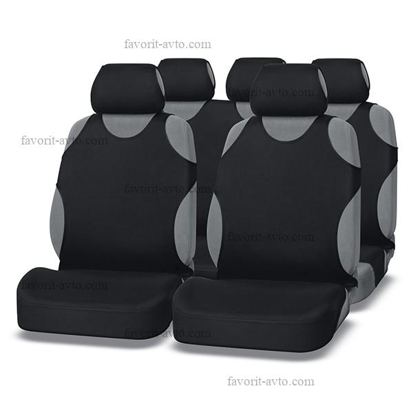 Авточехлы "Nova Bright-fusion" /ЧЁРНЫЙ с серыми вставками/ из х/б ткани (с узором), (11 предметов). Арт 47408. 1/7 |