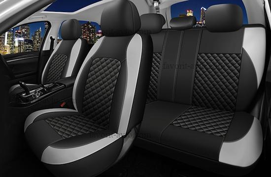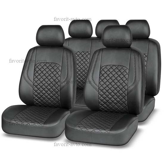 Авточехлы REAL AUTOPREMIER, чёрный/серый, экокожа/полиэстер, 3 мм поролон, 3 молнии, 9 предметов, 1/5, REL1040 |