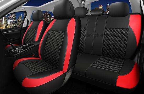 Авточехлы REAL AUTOPREMIER, чёрный/красный, экокожа/полиэстер, 3 мм поролон, 3 молнии, 9 предметов, 1/5, REL1200 |