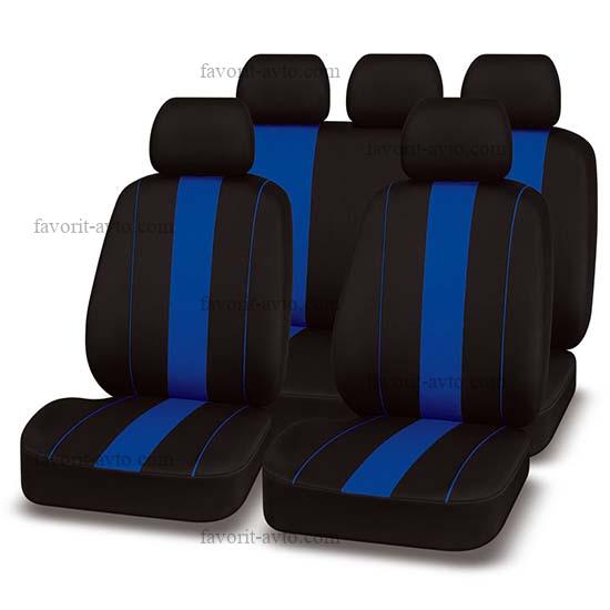 Авточехлы REAL AUTOPREMIER, чёрный/синий, экокожа/полиэстер, 3 мм поролон, 3 молнии, 9 предметов, 1/5, REL1100 |