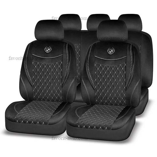 Авточехлы AUTOPREMIER ELEGANT, (ЧЁРНЫЙ/ БЕЛАЯ НИТЬ), алькантара, SRS AIRBAG, карман, 5 мм поролон, 6 молний, 11 предметов, 1/5, ELG2010 |
