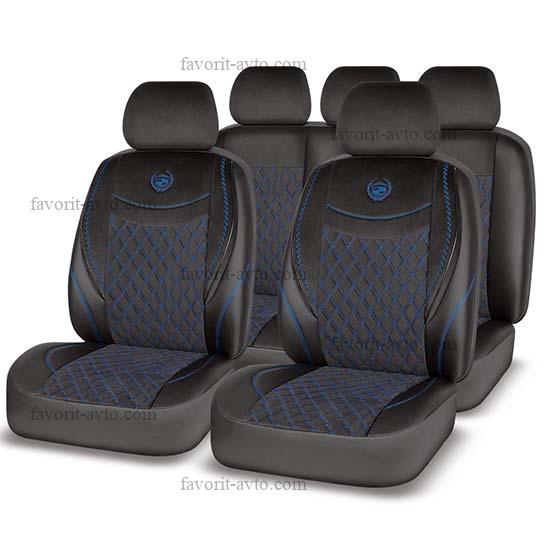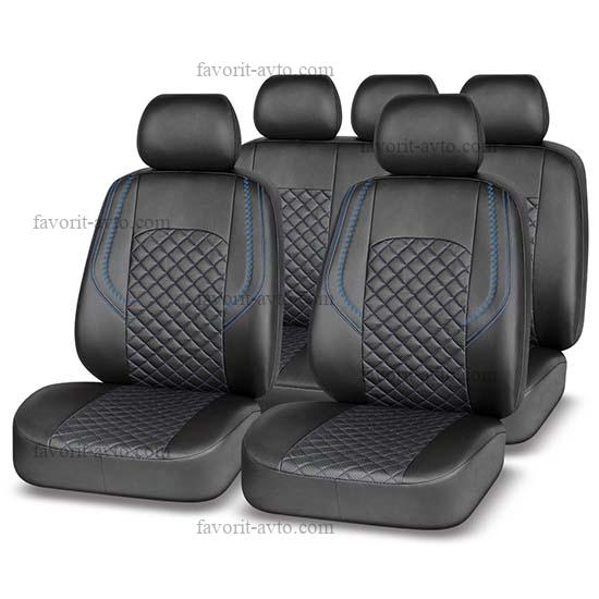 Авточехлы AUTOPREMIER GRAND, чёрный/синий, экокожа, стёганый ромб, карман, 5 мм поролон, 3 молнии, 11 предметов. 1/5, GND1010 |