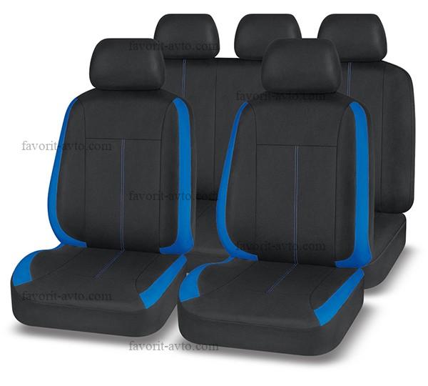 Авточехлы FUSION AUTOPREMIER, чёрный/синий, велюр+полиэстер, 3 мм поролон, 3 молнии, 9 предметов, 1/10, FUS1100 |