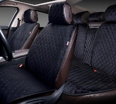 Накидка PREMIER ALCANTRA LUXE, комплект на весь салон 4 шт., /ЧЁРНЫЙ+синяя нить/, стёганая алькантара, 1/3, ALL1100 |