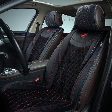 Накидка ABSOLUTE AUTOPREMIER, к-т передний 2 шт., чёрный/красный, стёганая алькантара, боковая отделка экокожей, закрытая спинка, карман, 1/6, ABS120 |