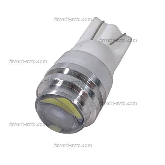Лампа светодиодная Т10 (W2,1-9,5d) белая, 1 HIGH POWER диод ЛИНЗА , (б/цокольная) 12v. Арт.: T10 HP-L. 1/10/100 |