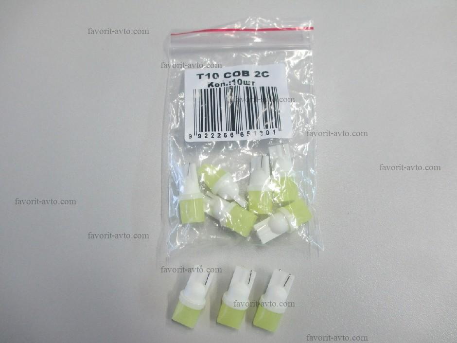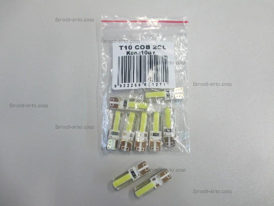 Лампа светодиодная Т10 COB 2CL(S) (W2,1-9,5d) белая, 2 диода, СИЛИКОН (б/цокольная) 12v. Мин. 10шт. 1/10/1700 |