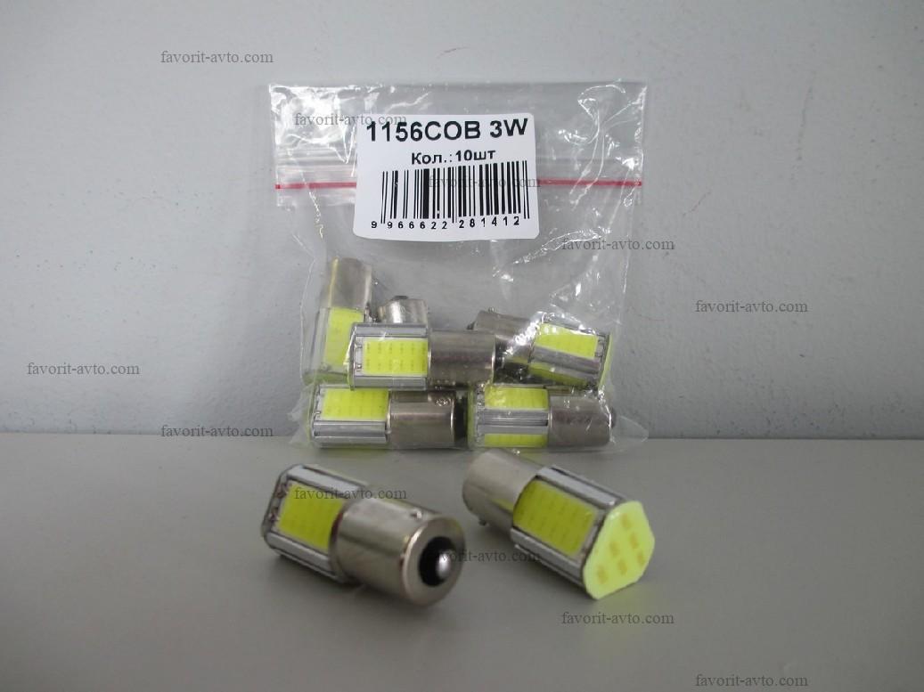 Лампа светодиодная 1156 COB 3W 12v (21w) BA15s (1 конт) 4 СОВ диода 3W, белая (поворот, стоп-сигнал). Мин. 10шт. Ар.: 1156 COB 3W. 1/10/350 |