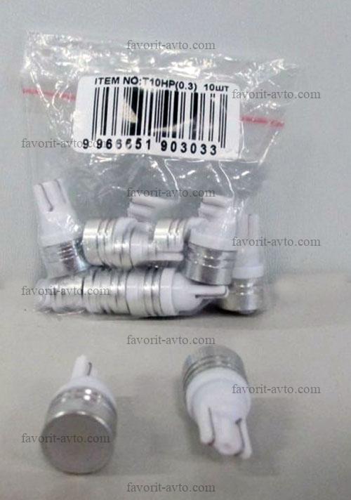 Лампа светодиодная Т10 HP(0,3w) (W2,1-9,5d) белая, 1 HIGH POWER 0,3W диод, (б/цокольная) 12v. Мин. 10шт. 1/10/1700 |