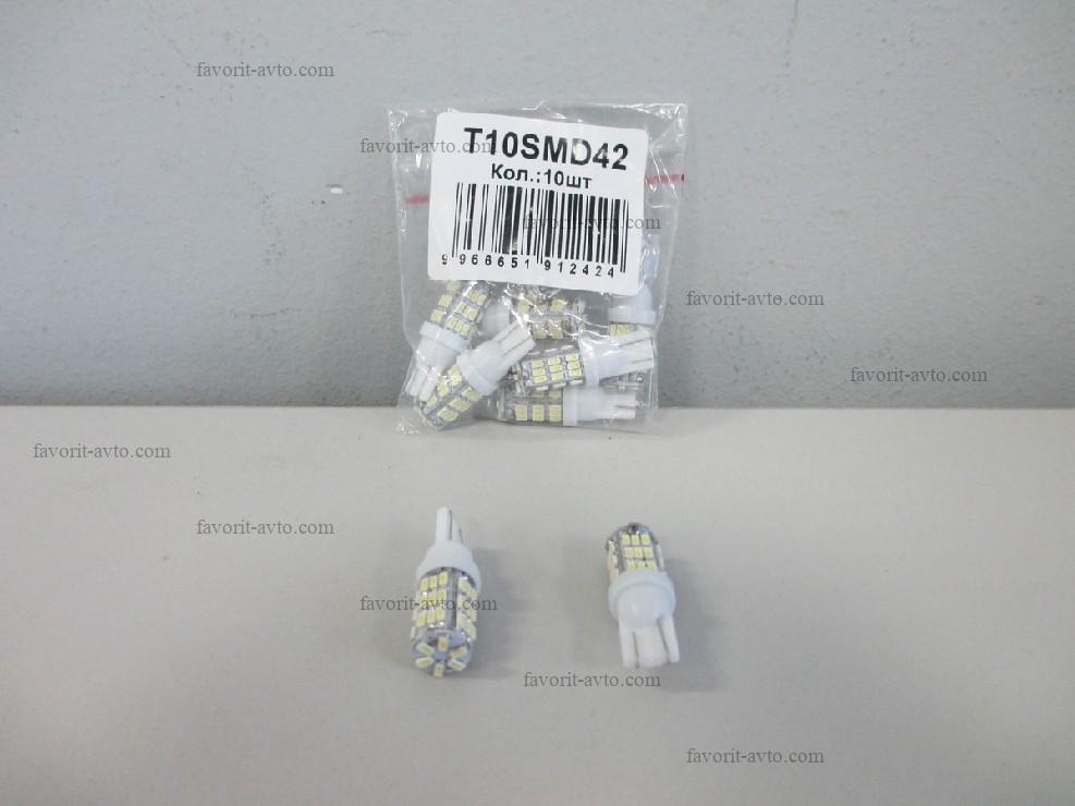 Лампа светодиодная Т10 SMD 42 (W2,1-9,5d) белая, 42 диода, (б/цокольная) 12v. Мин. 10шт. 1/10/1250 |