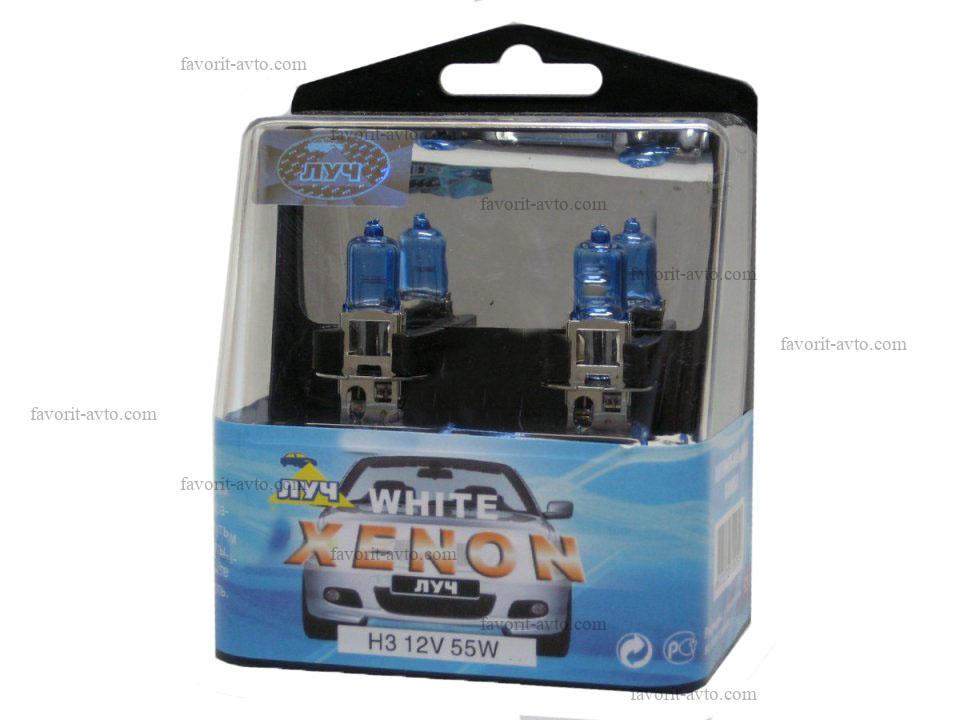 Автолампа H3 12v (100w) PK22s White Plasma Xenon Луч. Комп. 2шт. Арт.: ЛУЧ-Н3 55 Х (2). 1/6/60 |