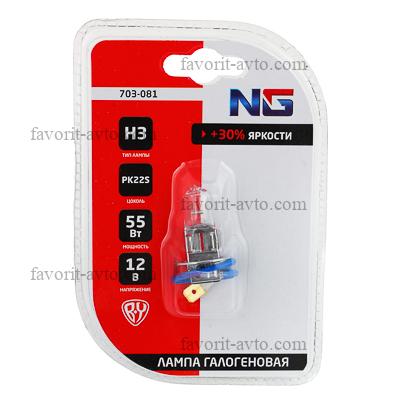 NG Лампа галогеновая H3, 12В 55Вт, PK22S, 1шт/блистер (Original). 1/10 |