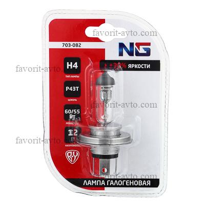 NG Лампа галогеновая H4, 12В 60/55Вт, P43T, 1шт/блистер (Original). 1/10 |