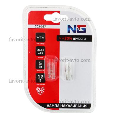 NG Лампа накаливания W5W T10, 12В 5Вт, 2шт/блистер (Original) |
